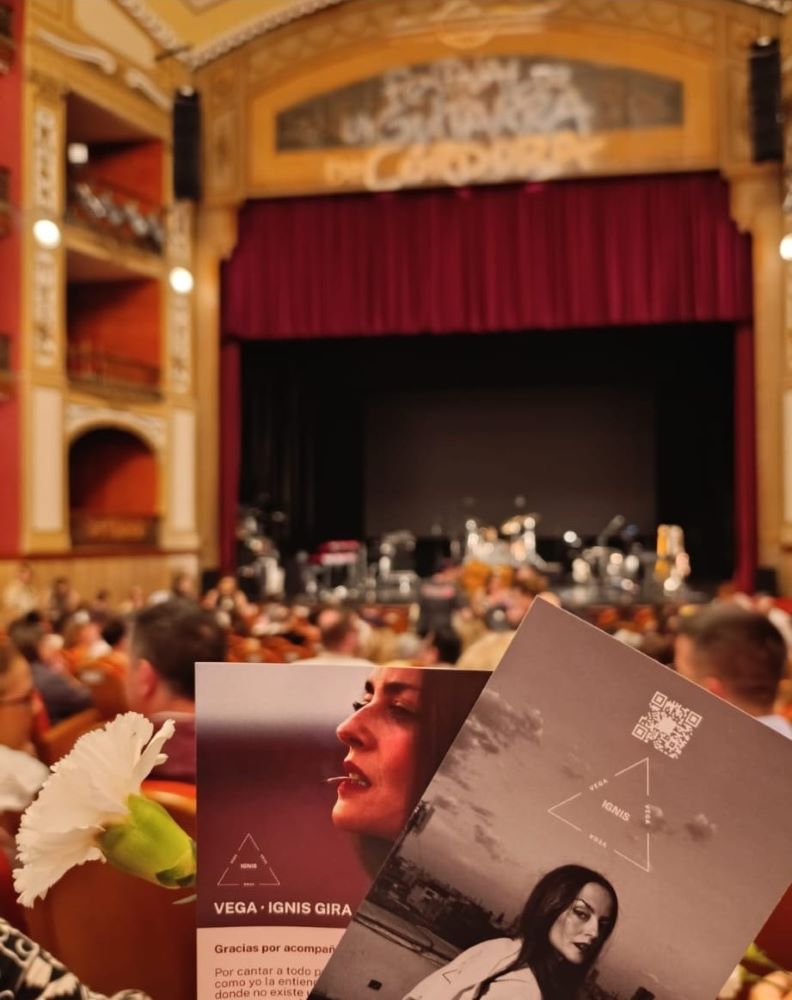Con un inicio tan dulce como la interpretación de “Non Ho L’Eta” de Gigliola Cinquetti acompañada por 4 pequeñas bailarinas del ballet de Maruja Caracuel, seria el preámbulo de una noche cargada de sensibilidad, en el queVega hizo un recorrido por su amplia discografia y la presentación de su nuevo y conceptual álbum “Ignis”, acompañada por excepcionales músicos que además han grabado este trabajo con ella, Ricky Falkner, Xavi Mole, Victor Valiente, Dani Ferrer, Angie Sánchez y David Soler.